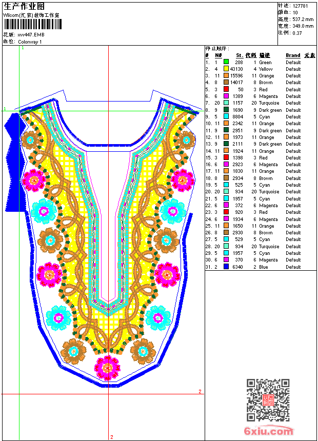 - emb花版参数: 大小:885.00 KB / 尺寸:349*537[毫米] / 针数:127781针 / 线色:10 / 格式:emb / 版本:9