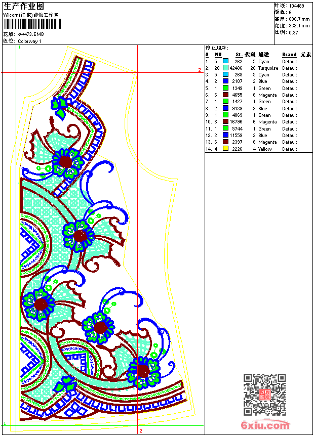 - emb花版参数: 大小:593.50 KB / 尺寸:332*691[毫米] / 针数:104489针 / 线色:6 / 格式:emb / 版本:9