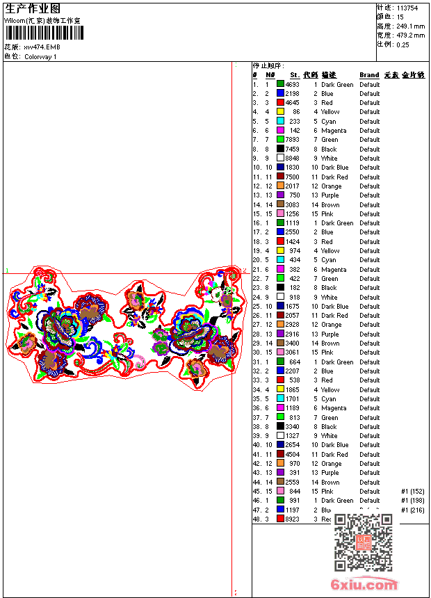 - emb花版参数: 大小:526.00 KB / 尺寸:479*249[毫米] / 针数:113754针 / 线色:15 / 格式:emb / 版本:9