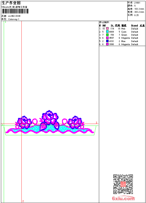 - EMB花版参数: 大小:143.50 KB / 尺寸:383*103[毫米] / 针数:21061针 / 线色:5 / 格式:EMB / 版本:9