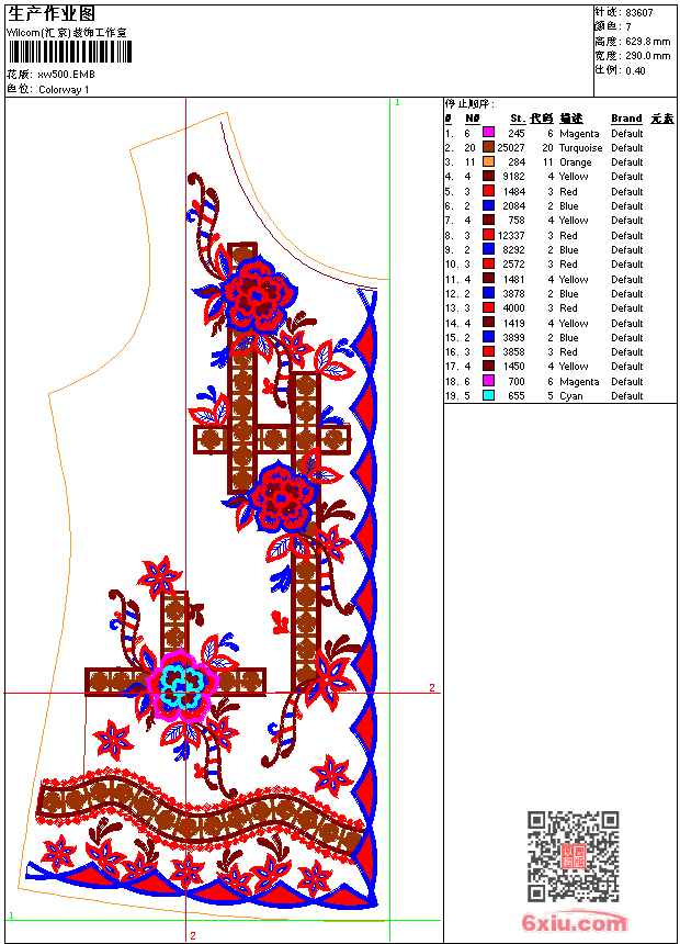 - emb花版参数: 大小:343.00 KB / 尺寸:290*630[毫米] / 针数:83607针 / 线色:7 / 格式:emb / 版本:9