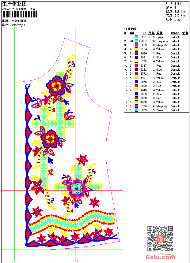 - emb花版参数: 大小:343.50 KB / 尺寸:311*630[毫米] / 针数:83631针 / 线色:6 / 格式:emb / 版本:9