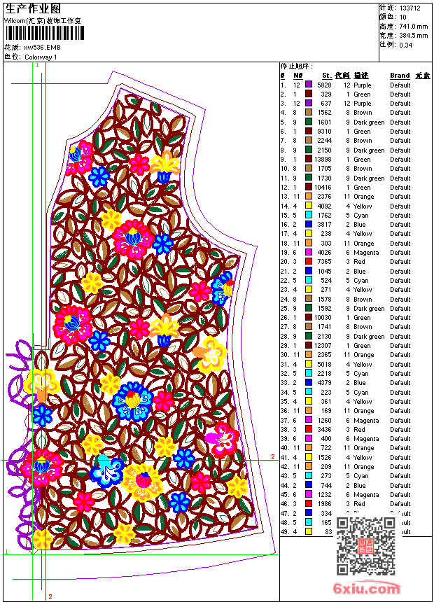 - emb花版参数: 大小:1023.00 KB / 尺寸:385*741[毫米] / 针数:133712针 / 线色:10 / 格式:emb / 版本:9