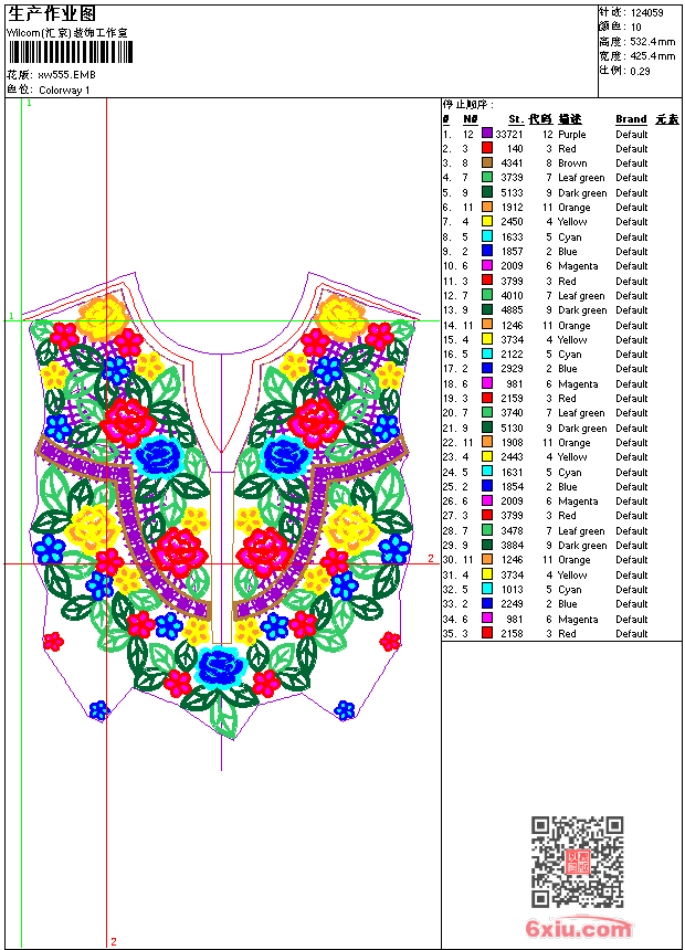 - emb花版参数: 大小:761.50 KB / 尺寸:425*532[毫米] / 针数:124134针 / 线色:10 / 格式:emb / 版本:9