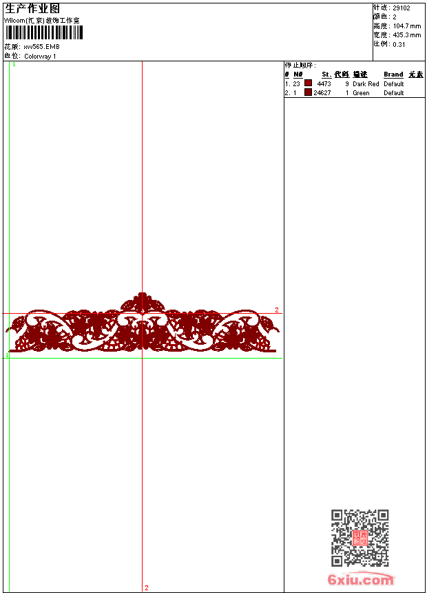 - emb花版参数: 大小:235.00 KB / 尺寸:435*105[毫米] / 针数:29102针 / 线色:2 / 格式:emb / 版本:9