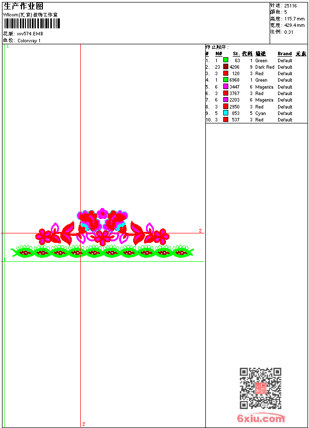 - emb花版参数: 大小:144.00 KB / 尺寸:429*116[毫米] / 针数:25116针 / 线色:5 / 格式:emb / 版本:9