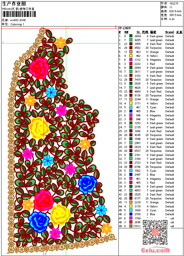 - emb花版参数: 大小:1.15 MB / 尺寸:306*629[毫米] / 针数:162215针 / 线色:11 / 格式:emb / 版本:9