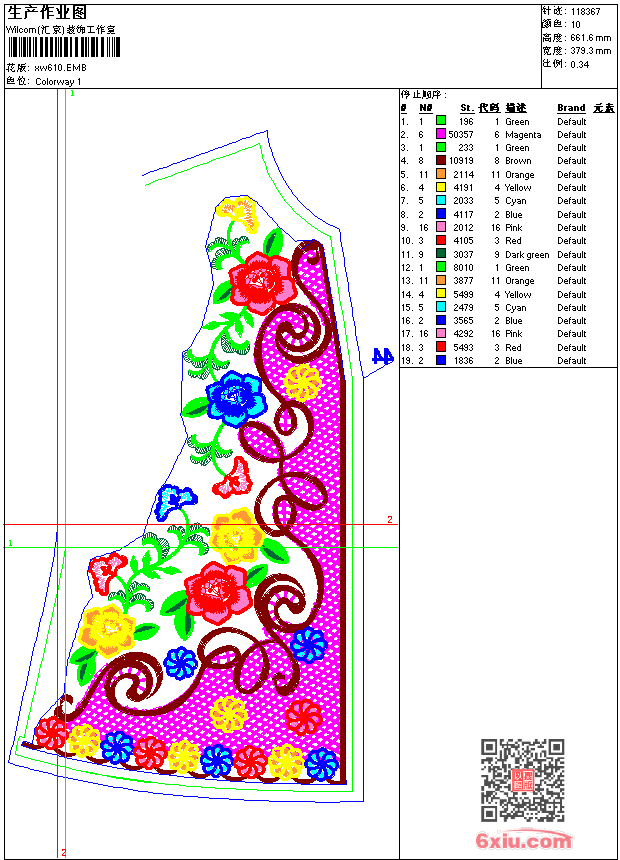 - emb花版参数: 大小:561.50 KB / 尺寸:379*662[毫米] / 针数:118367针 / 线色:10 / 格式:emb / 版本:9