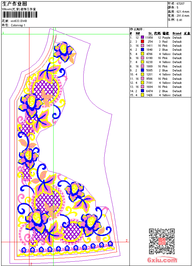 - emb花版参数: 大小:442.50 KB / 尺寸:292*621[毫米] / 针数:67207针 / 线色:5 / 格式:emb / 版本:9