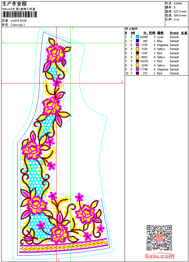 - emb花版参数: 大小:291.00 KB / 尺寸:270*628[毫米] / 针数:63944针 / 线色:5 / 格式:emb / 版本:9