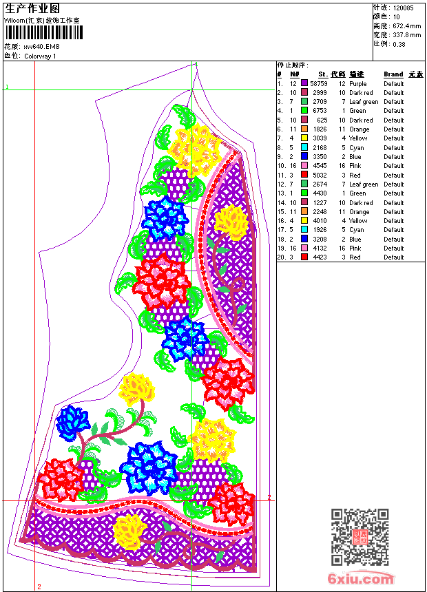 - emb花版参数: 大小:527.50 KB / 尺寸:338*672[毫米] / 针数:120085针 / 线色:10 / 格式:emb / 版本:9
