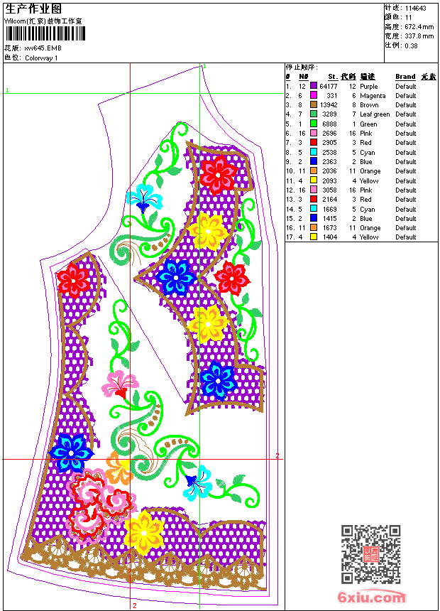 - emb花版参数: 大小:394.00 KB / 尺寸:338*672[毫米] / 针数:114643针 / 线色:11 / 格式:emb / 版本:9