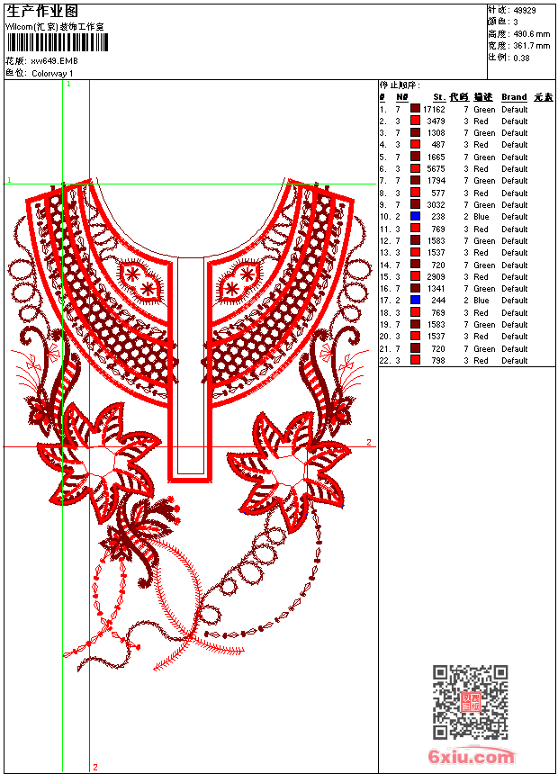 - emb花版参数: 大小:378.00 KB / 尺寸:362*491[毫米] / 针数:49929针 / 线色:3 / 格式:emb / 版本:9