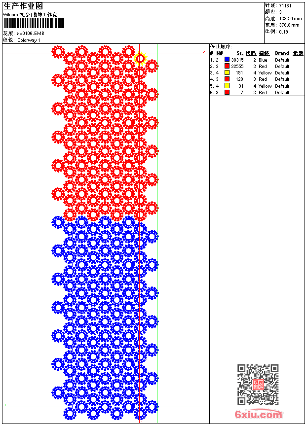 - emb花版参数: 大小:678.00 KB / 尺寸:377*1323[毫米] / 针数:71179针 / 线色:3 / 格式:emb / 版本:9