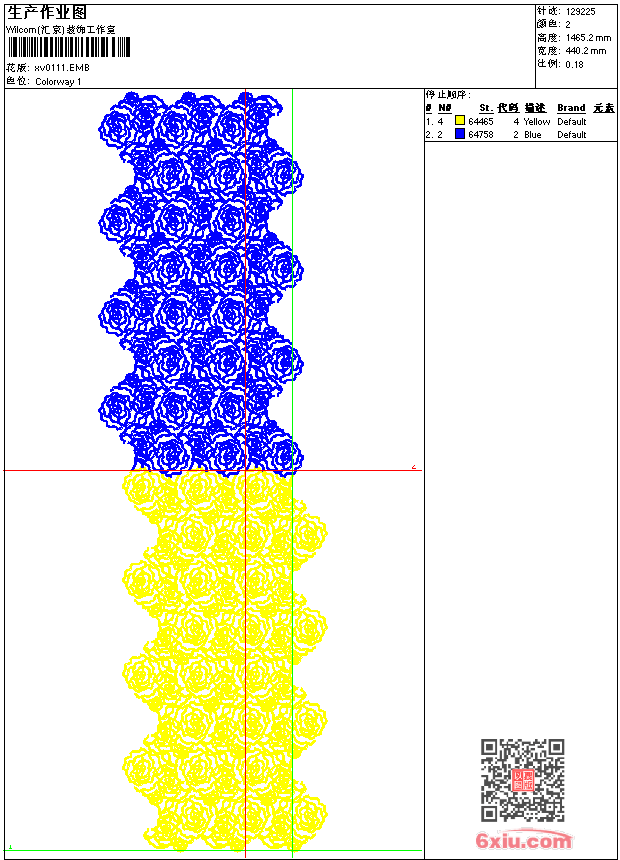 - emb花版参数: 大小:454.00 KB / 尺寸:440*1465[毫米] / 针数:129225针 / 线色:2 / 格式:emb / 版本:9
