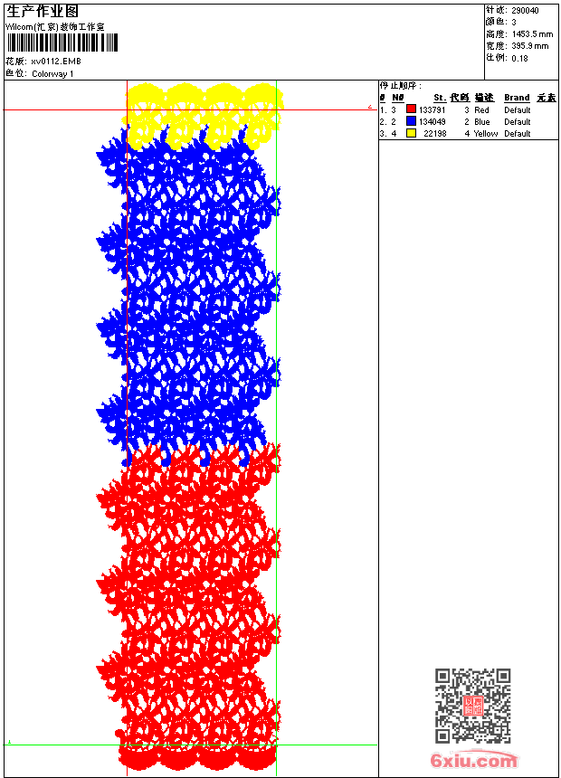 - emb花版参数: 大小:2.24 MB / 尺寸:396*1454[毫米] / 针数:290040针 / 线色:3 / 格式:emb / 版本:9
