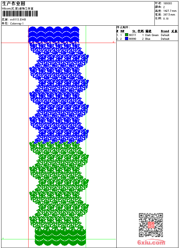 - emb花版参数: 大小:358.00 KB / 尺寸:398*1428[毫米] / 针数:189303针 / 线色:2 / 格式:emb / 版本:9