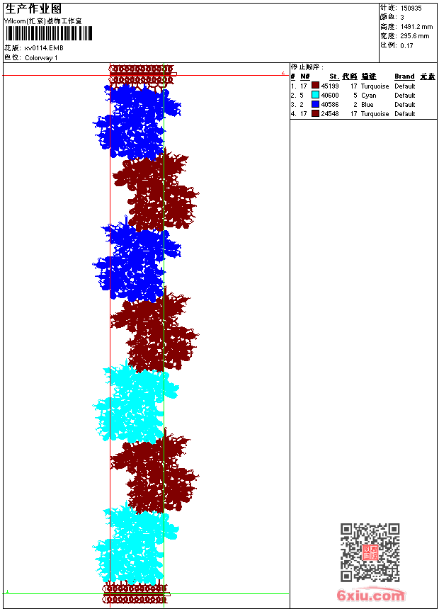 - emb花版参数: 大小:1.61 MB / 尺寸:296*1491[毫米] / 针数:150935针 / 线色:3 / 格式:emb / 版本:9
