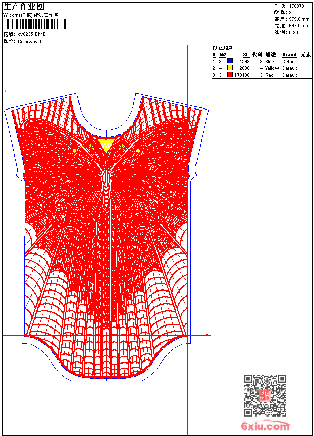 - emb花版参数: 大小:1.09 MB / 尺寸:697*980[毫米] / 针数:176879针 / 线色:3 / 格式:emb / 版本:9