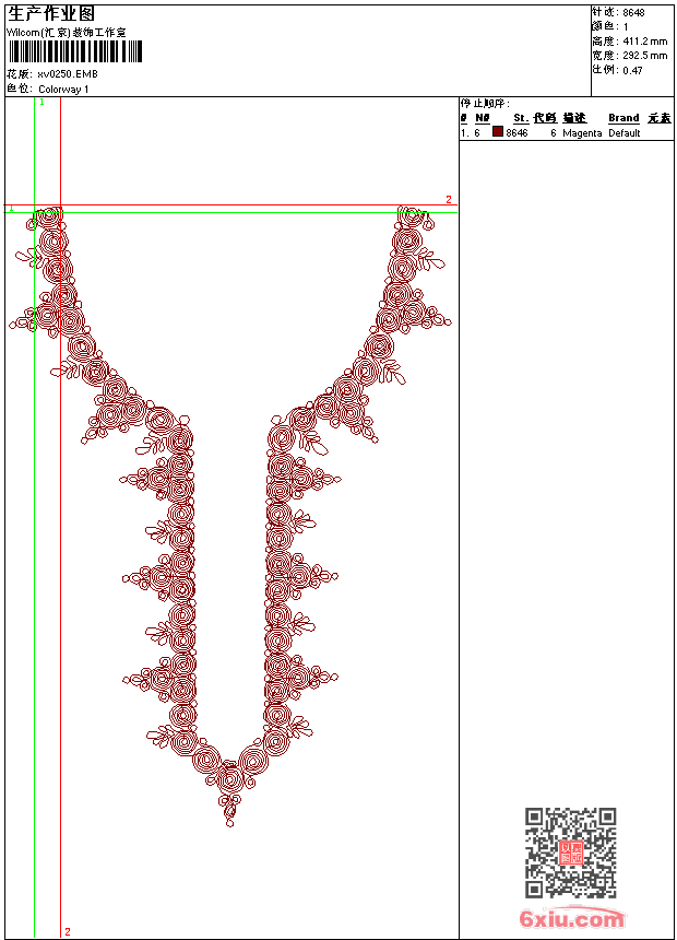 - emb花版参数: 大小:92.00 KB / 尺寸:293*411[毫米] / 针数:8648针 / 线色:1 / 格式:emb / 版本:9