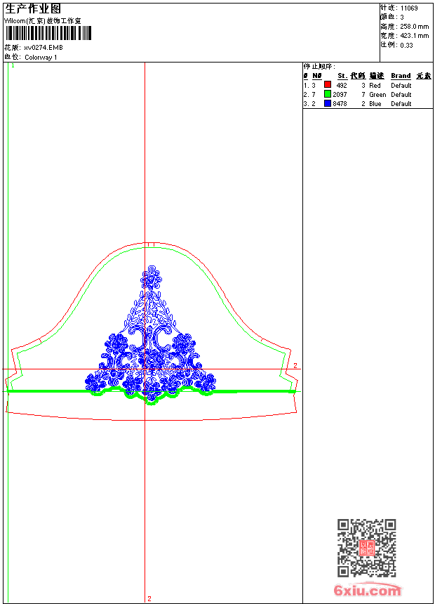 - emb花版参数: 大小:97.00 KB / 尺寸:423*258[毫米] / 针数:11069针 / 线色:3 / 格式:emb / 版本:9