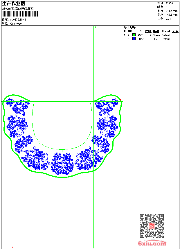 - emb花版参数: 大小:226.00 KB / 尺寸:447*312[毫米] / 针数:23450针 / 线色:2 / 格式:emb / 版本:9