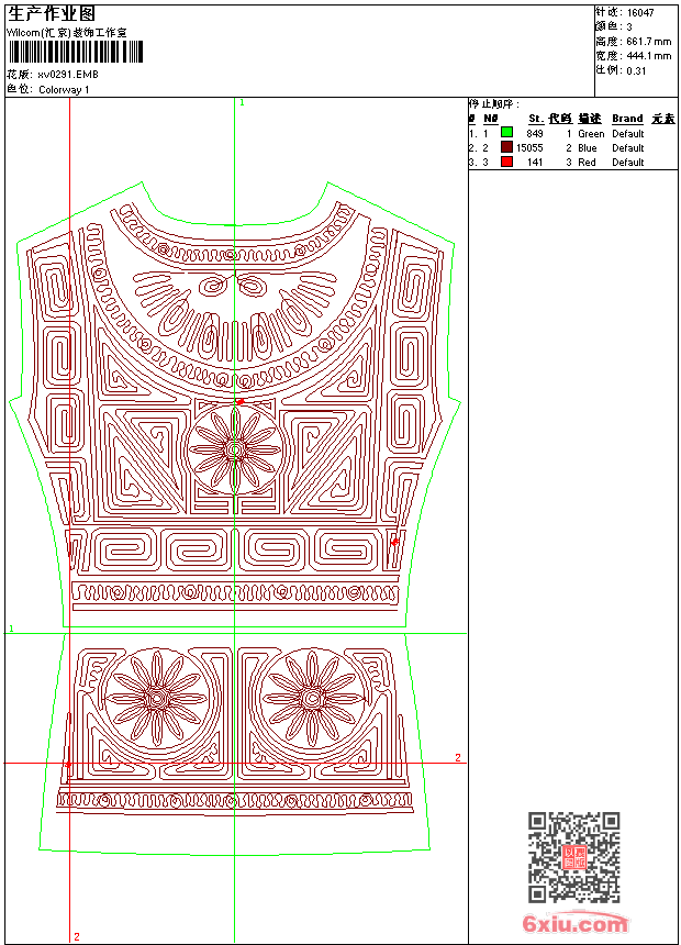 - emb花版参数: 大小:57.00 KB / 尺寸:444*662[毫米] / 针数:16047针 / 线色:3 / 格式:emb / 版本:9