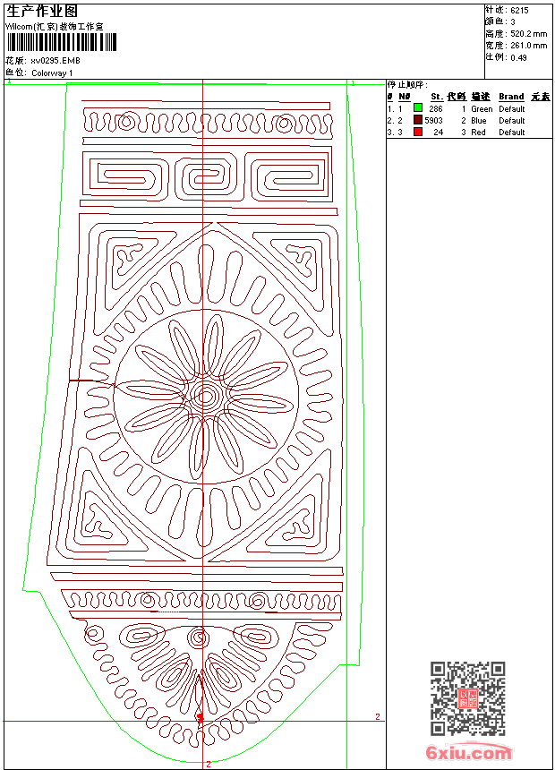 - emb花版参数: 大小:31.50 KB / 尺寸:261*520[毫米] / 针数:6215针 / 线色:3 / 格式:emb / 版本:9
