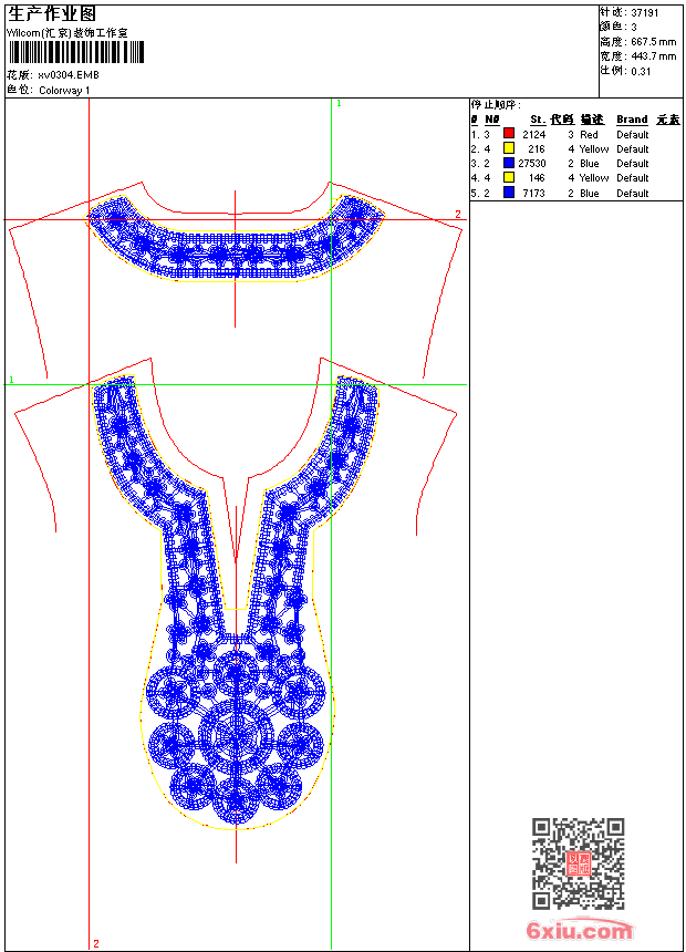 - emb花版参数: 大小:202.00 KB / 尺寸:444*668[毫米] / 针数:37191针 / 线色:3 / 格式:emb / 版本:9