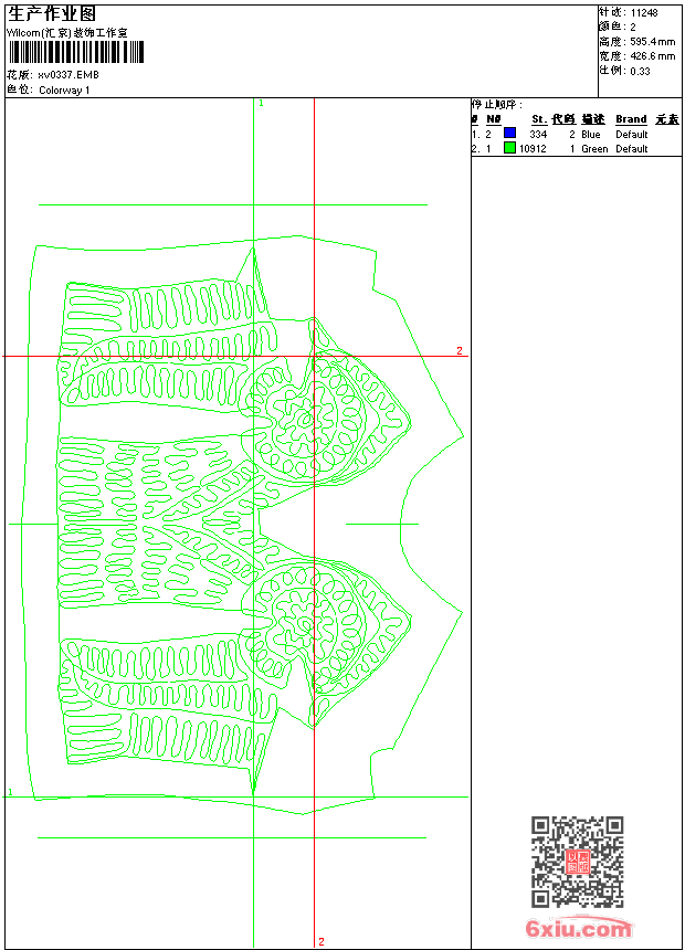 - emb花版参数: 大小:64.50 KB / 尺寸:427*595[毫米] / 针数:11248针 / 线色:2 / 格式:emb / 版本:9