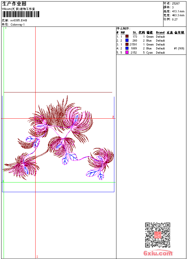 - emb花版参数: 大小:446.50 KB / 尺寸:463*413[毫米] / 针数:25267针 / 线色:3 / 格式:emb / 版本:9