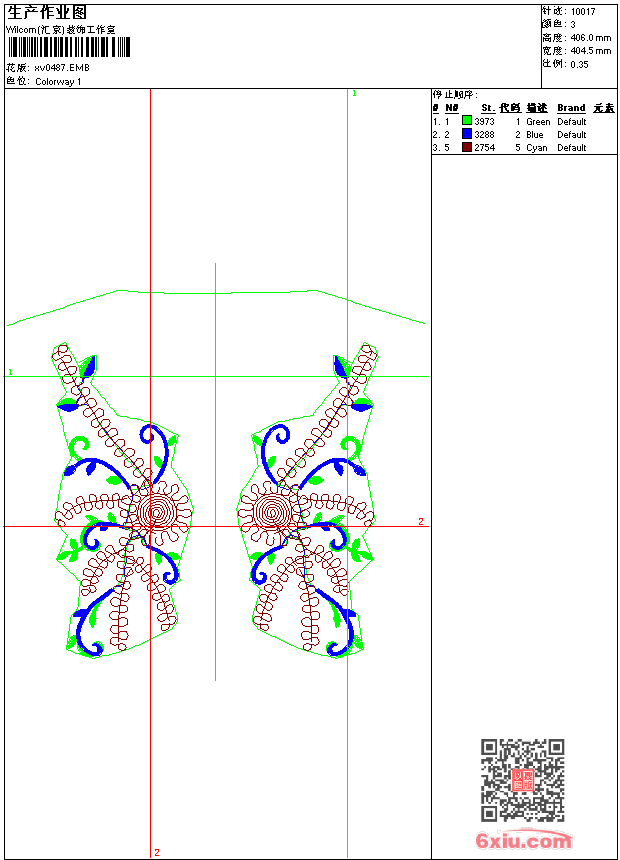 - emb花版参数: 大小:68.00 KB / 尺寸:405*406[毫米] / 针数:10017针 / 线色:3 / 格式:emb / 版本:9