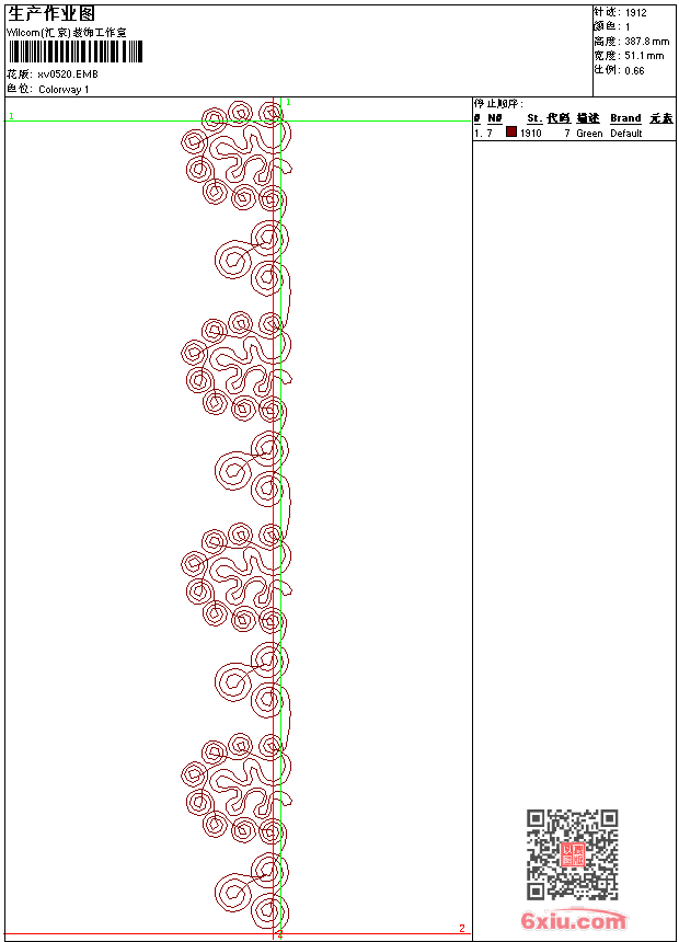 - emb花版参数: 大小:20.00 KB / 尺寸:51*388[毫米] / 针数:1912针 / 线色:1 / 格式:emb / 版本:9