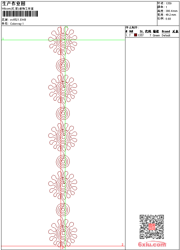 - emb花版参数: 大小:19.00 KB / 尺寸:49*380[毫米] / 针数:1359针 / 线色:1 / 格式:emb / 版本:9