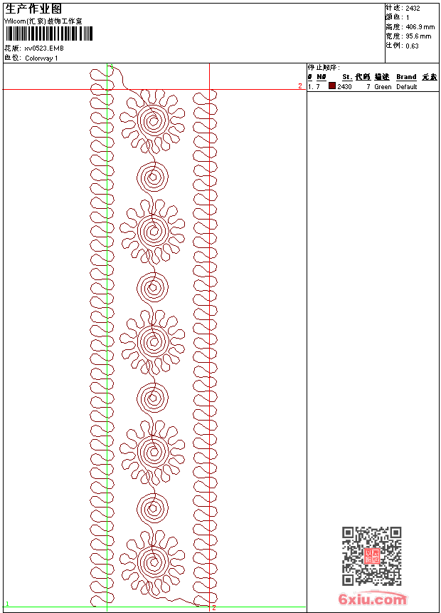 - emb花版参数: 大小:23.00 KB / 尺寸:96*407[毫米] / 针数:2432针 / 线色:1 / 格式:emb / 版本:9