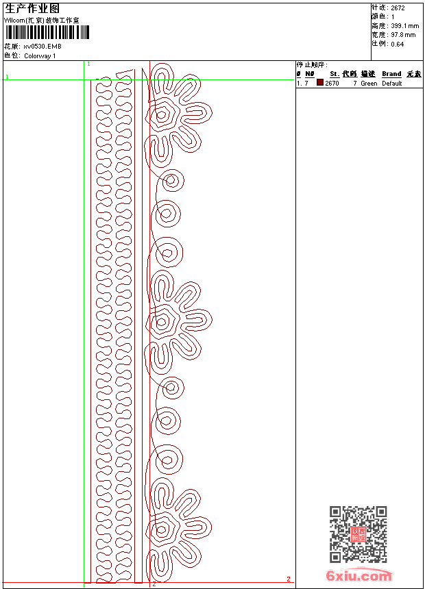 - emb花版参数: 大小:29.50 KB / 尺寸:98*399[毫米] / 针数:2672针 / 线色:1 / 格式:emb / 版本:9
