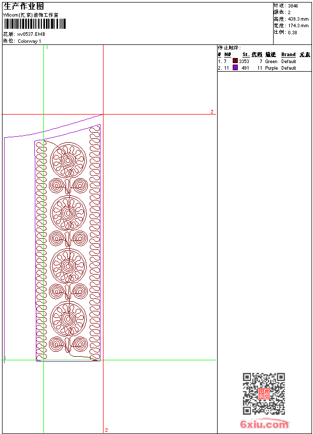 - emb花版参数: 大小:31.00 KB / 尺寸:174*439[毫米] / 针数:3846针 / 线色:2 / 格式:emb / 版本:9