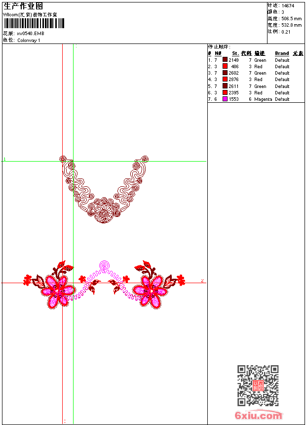 - emb花版参数: 大小:123.00 KB / 尺寸:533*507[毫米] / 针数:14674针 / 线色:3 / 格式:emb / 版本:9