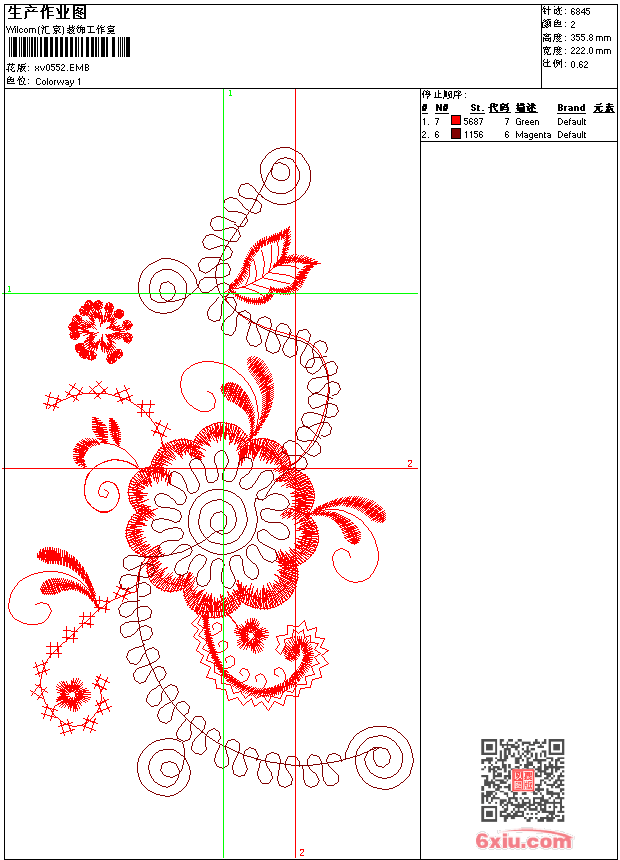 - emb花版参数: 大小:68.00 KB / 尺寸:222*356[毫米] / 针数:6845针 / 线色:2 / 格式:emb / 版本:9