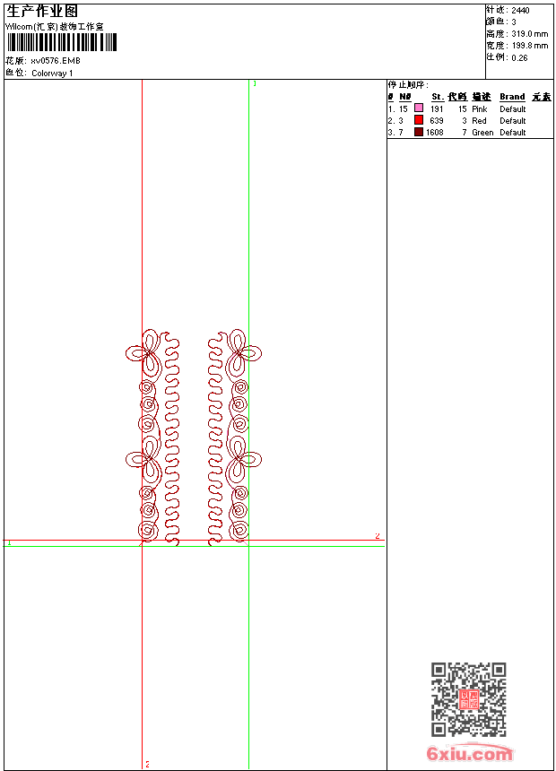 - EMB花版参数: 大小:56.50 KB / 尺寸:200*319[毫米] / 针数:2440针 / 线色:3 / 格式:EMB / 版本:9