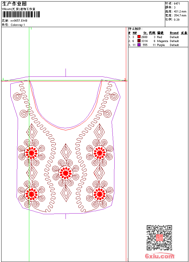 - emb花版参数: 大小:58.00 KB / 尺寸:355*431[毫米] / 针数:6471针 / 线色:3 / 格式:emb / 版本:9