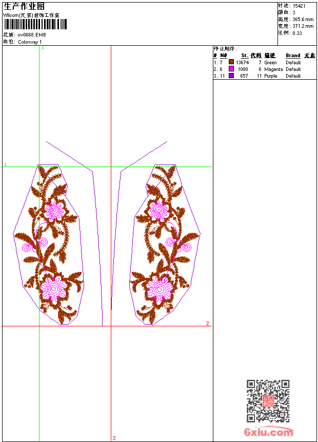 - emb花版参数: 大小:143.50 KB / 尺寸:371*366[毫米] / 针数:15421针 / 线色:3 / 格式:emb / 版本:9