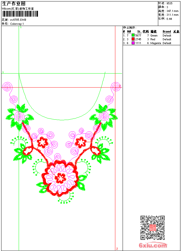 - emb花版参数: 大小:74.00 KB / 尺寸:311*347[毫米] / 针数:9535针 / 线色:3 / 格式:emb / 版本:9