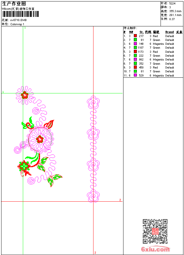 - emb花版参数: 大小:64.50 KB / 尺寸:261*355[毫米] / 针数:5224针 / 线色:3 / 格式:emb / 版本:9