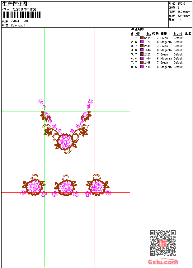- emb花版参数: 大小:107.00 KB / 尺寸:524*560[毫米] / 针数:15037针 / 线色:2 / 格式:emb / 版本:9