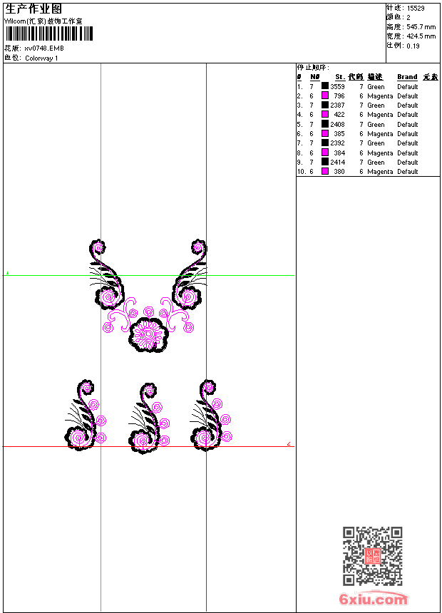 - emb花版参数: 大小:95.00 KB / 尺寸:424*546[毫米] / 针数:15529针 / 线色:2 / 格式:emb / 版本:9