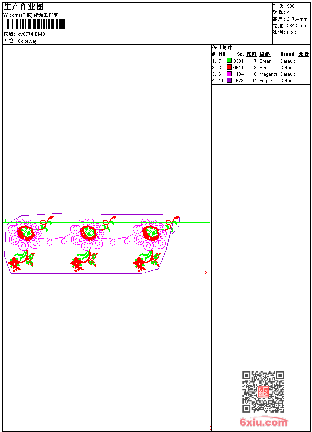 - emb花版参数: 大小:57.00 KB / 尺寸:584*217[毫米] / 针数:9861针 / 线色:4 / 格式:emb / 版本:9