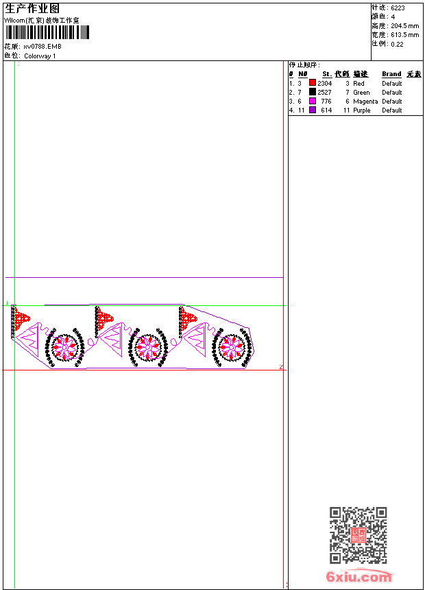 - emb花版参数: 大小:51.00 KB / 尺寸:614*205[毫米] / 针数:6223针 / 线色:4 / 格式:emb / 版本:9