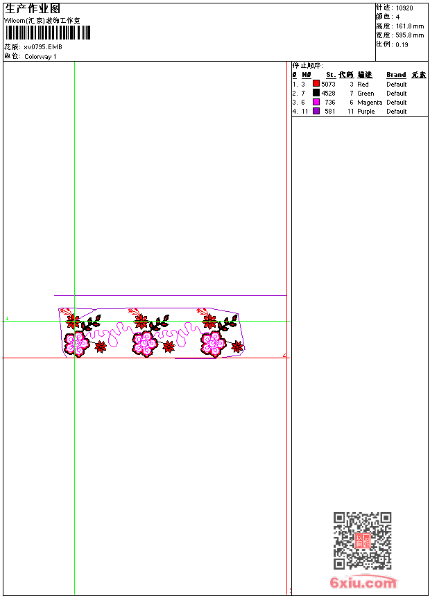 - emb花版参数: 大小:55.50 KB / 尺寸:596*162[毫米] / 针数:10920针 / 线色:4 / 格式:emb / 版本:9