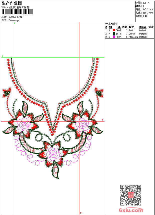 - emb花版参数: 大小:121.00 KB / 尺寸:290*347[毫米] / 针数:12817针 / 线色:3 / 格式:emb / 版本:9